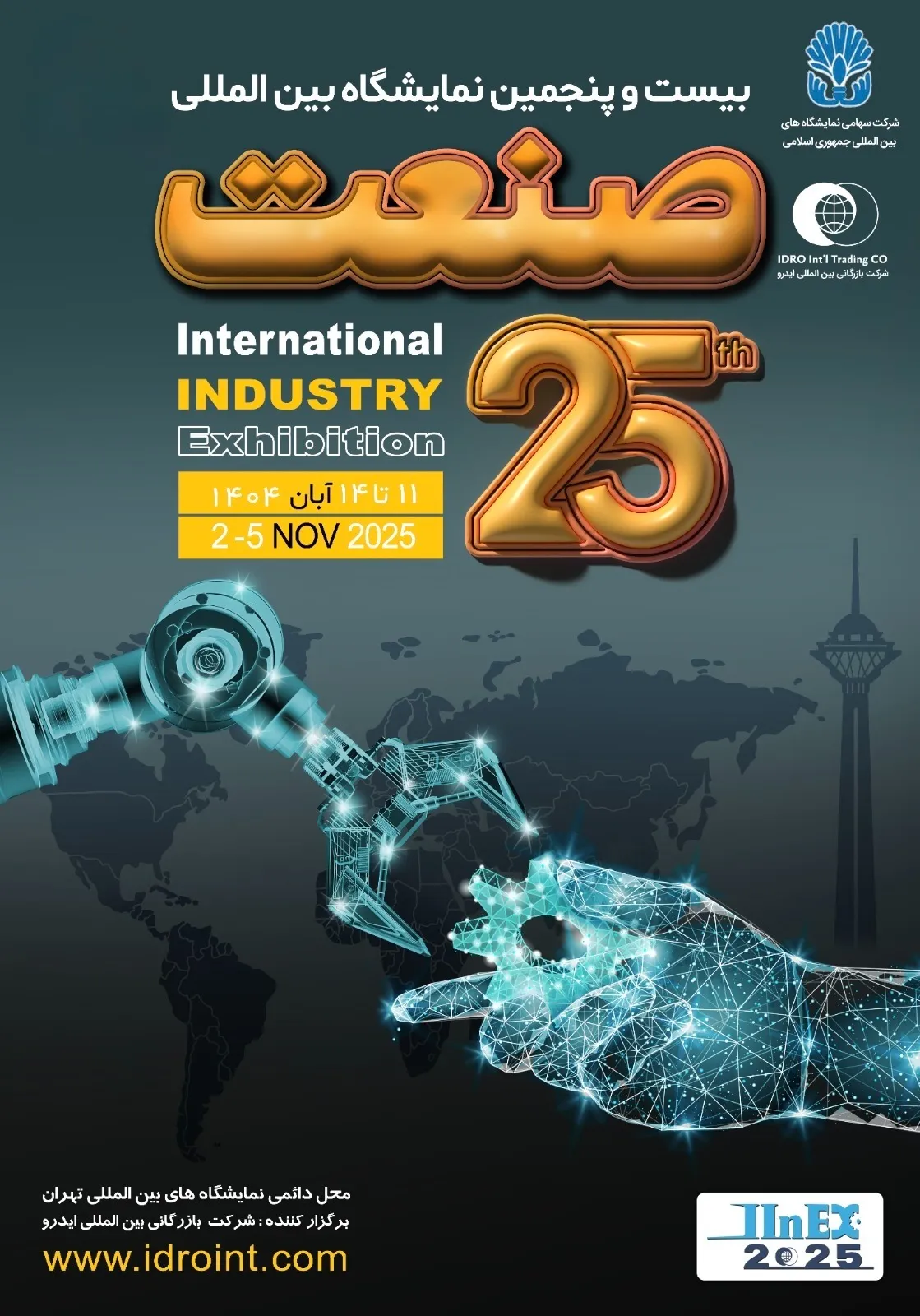 بیست و پنجمین نمایشگاه بینالمللی صنعت تهران از 11 تا ۴14آبان ۱۴۰۴ در محل دائمی نمایشگاههای بینالمللی تهران برگزار میشود. این نمایشگاه به عنوان یکی از بزرگترین رویدادهای صنعتی کشور، محلی برای عرضه جدیدترین فناوریها، ماشینآلات، تجهیزات صنعتی، قطعات، ابزار دقیق و نوآوریهای مرتبط با حوزه صنعت ایران و جهان است. این رویداد تخصصی با هدف نمایش توانمندیهای تولیدکنندگان داخلی، توسعه همکاریهای بینالمللی، تبادل دانش فنی و جذب سرمایهگذاری خارجی برگزار میشود. حضور شرکتهای معتبر ایرانی و خارجی، معرفی خطوط تولید نوین، و رونمایی از فناوریهای صنعتی روز دنیا، این نمایشگاه را به بستری پویا برای شبکهسازی تجاری، توسعه صادرات و ارتقای جایگاه صنعت کشور تبدیل کرده است.
